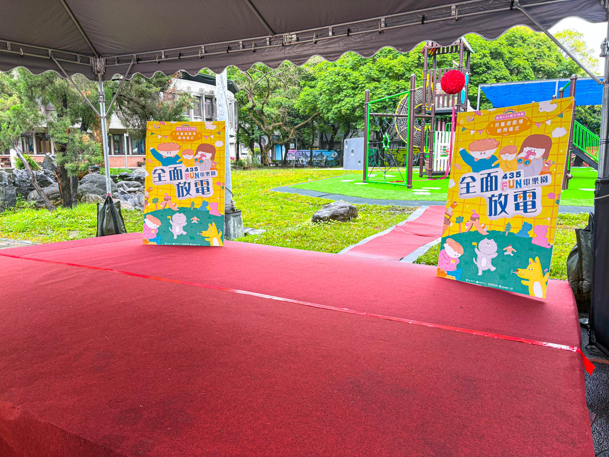 Stage Area: A simple yet sturdy stage measuring 600cm (W) × 360cm (D) × 30cm (H) was built, covered with a red carpet to enhance the overall atmosphere. This served as the main area for guest speeches and the opening performance by Xinyue Kindergarten.